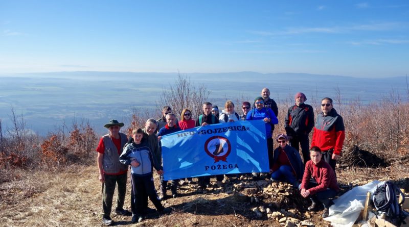 Ekipa HPD Gojzerice iz Požege, jutros je krenula na obronke Krndije. Autima su otišli do Hrnjevca i oštrim usponom se popeli do vidikovca na Roginom kamenu.