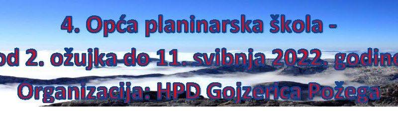 U srijedu, 2. ožujka 2022., s prvim predavanjem započela je 4. Opća planinarska škola u HPD Gojzerici. Škola se održava